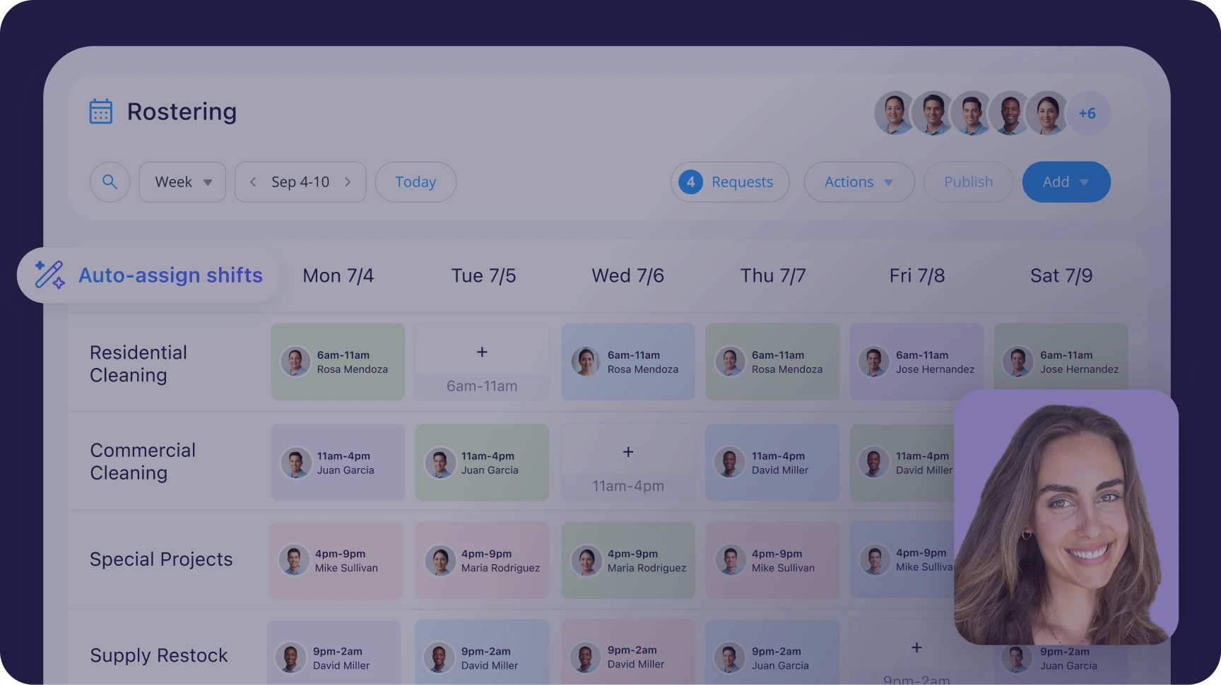 - Build rosters in minutes with AI and smart templates